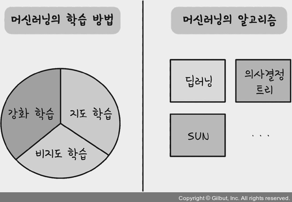 그림 8-3 머신러닝의 학습 방법과 알고리즘 비교