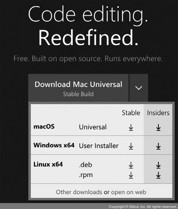Download for free 버튼을 누르면 여러분 운영체제를 추정하여 적합한 설치 파일을 자동으로 내려받기합니다. 혹시 다른 운영체제용 설치 파일이 필요하다면 목록 펼침 버튼을 눌러 보세요.