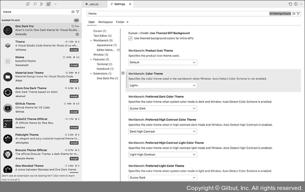 비주얼 스튜디오 코드의 확장 기능으로 외양을 바꿀 수도 있습니다. 비주얼 스튜디오 코드는 글꼴이나 텍스트 색상, 배경색 등을 사용자가 하나하나 바꿀 수 있도록 설정 항목을 제공합니다. 그런데 기본 테마 외에 좀 더 다양한 테마를 편하게 변경하여 사용하고 싶다면 이미 만들어진 테마(thema)를 확장 기능으로 설치합니다.