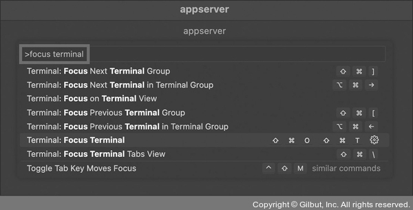 명령어 팔레트에서 ‘focus terminal’이라고 입력합니다.