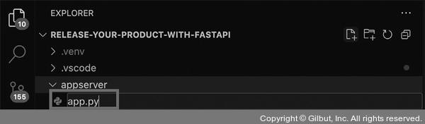 ▲ 그림 3-27 비주얼 스튜디오 코드에서 appserver 디렉터리 생성