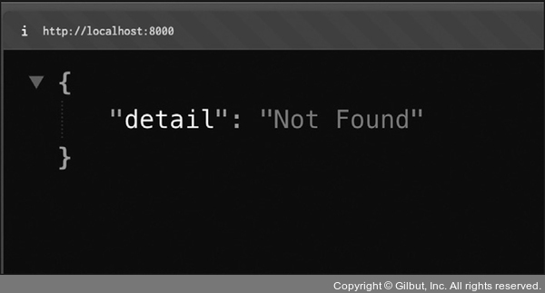 ▲ 그림 3-30 Not Found 응답을 하는 FastAPI 웹 애플리케이션 서버
