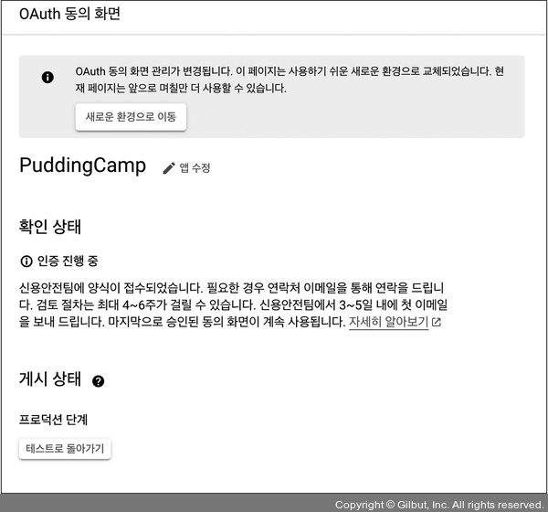 OAuth2로 인증할 때 사용자의 구글 캘린더 접근 권한을 요구하면 더 많은 기능을 구현할 수 있지만, 구글 캘린더 접근 권한은 구글에서 민감한 접근 권한으로 간주하여 사용에 제한을 둡니다. 이런 제한을 해제하려면 구글에 검수를 요청해야 하는데, 이 단계에 적지 않은 시간이 소요됩니다. 이 책을 작성하는 시점에 필자는 2개월 동안 인증 진행 중 상태에 머물러 있었습니다.