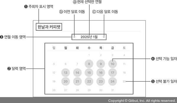 달력 영역은 사용자가 선택한 연월에 해당하는 달력을 표시합니다. 따로 선택한 연월이 없으면 현재 연월의 달력을 표시하고요. 이 달력 영역을 표시하는 API는 URL을 /calendar로 합니다. 특정 연도와 월을 지정하는 것은 경로로 구분하는데 /calendar/<연도>/<월>로 합니다.