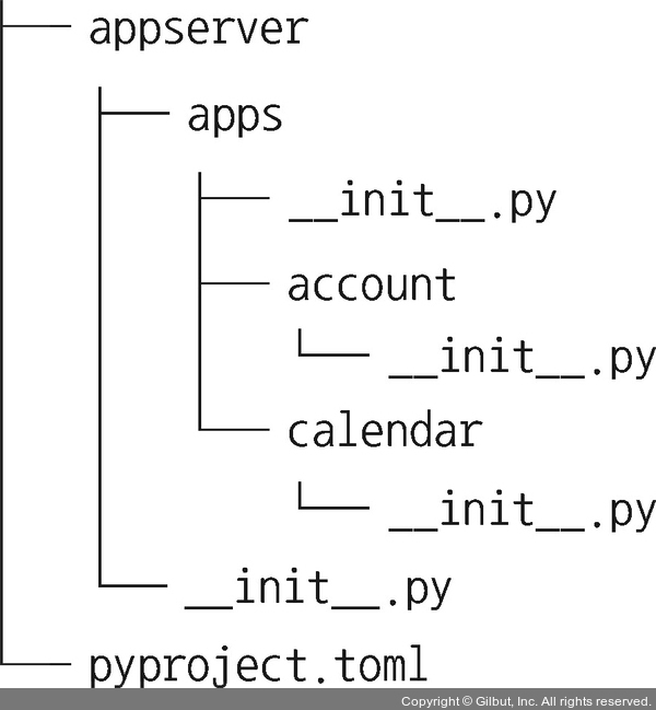 이후 우리가 만드는 약속 잡기 프로젝트의 각 기능을 담은 앱을 ‘기능 앱’이라 하고, 관련 코드를 앱 디렉터리 안에 담도록 하겠습니다. 예를 들어 앞서 만든 account와 calendar 디렉터리는 이후 account 앱, calendar 앱이라고 지칭합니다.