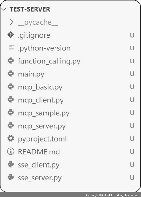 9. 이 책의 깃허브 저장소에서 제공되는 실습 파일들은 모두 uv로 생성된 프로젝트입니다. 따라서 직접 uv로 프로젝트를 만들었다면, 내려받은 test-server 폴더 안의 .py 파일들을 커서의 탐색기 창으로 드래그 앤 드롭해 주세요. 만약 uv로 프로젝트를 생성하지 않았다면, 커서에서 Open Folder 기능을 이용해 내려 받은 실습 폴더를 열어주면 됩니다.