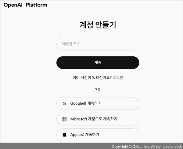 화면의 안내에 따라 회원 가입을 합니다. 구글, 마이크로소프트, 애플 계정과 연동해 회원 가입을 할 수도 있습니다.